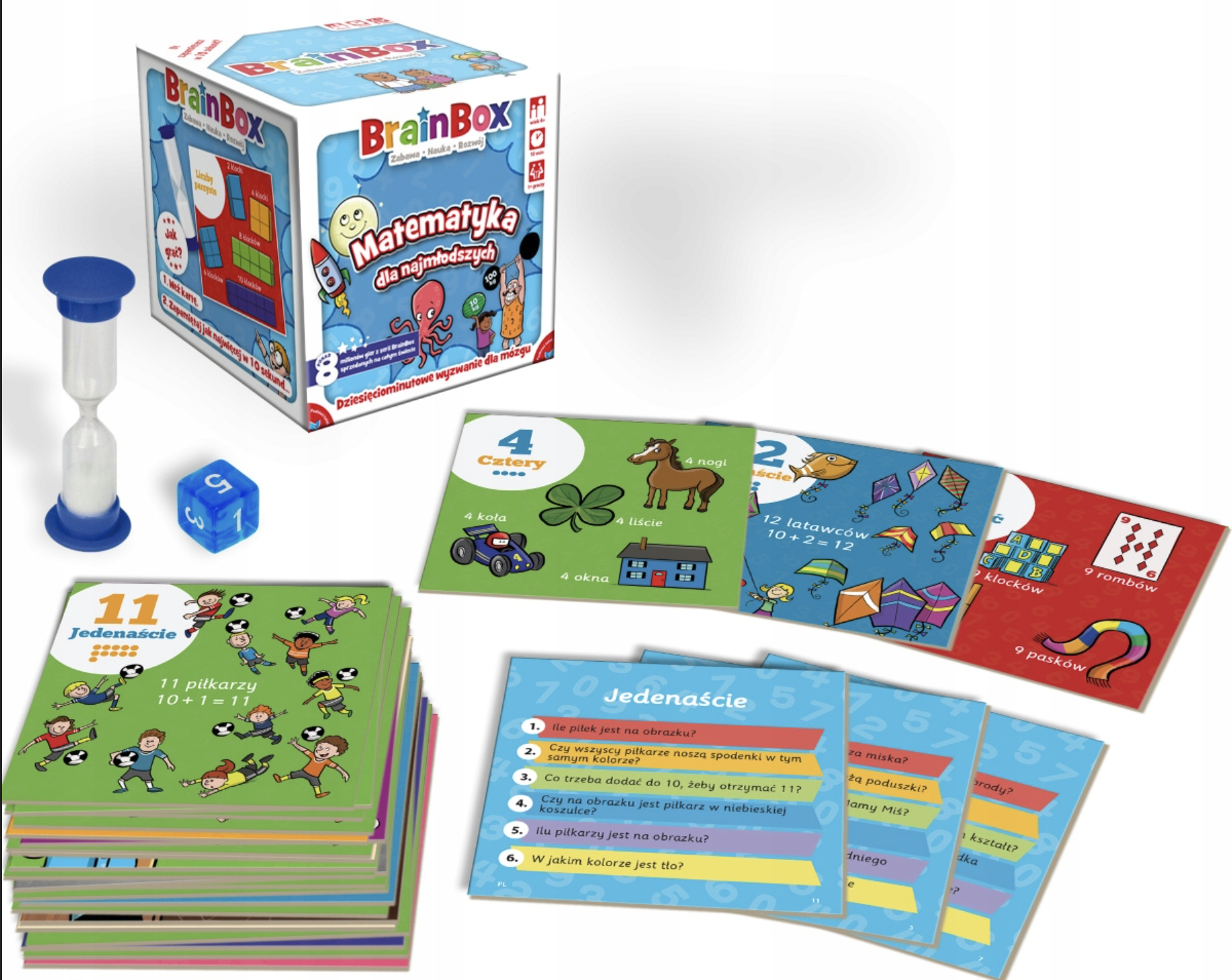 Chcesz ułatwić swojemu dziecku szkolny start? Szukasz narzędzia, które pozwoli maluchowi w formie zabawy przyswoić podstawowe pojęcia matematyczne? Zajrzyj do pudełka BrainBox - Matematyka dla najmłodszych, gdzie znajdziesz zadania związane z liczeniem do 20, prostym dodawaniem i odejmowaniem, podstawowymi wagami, miarami itp.