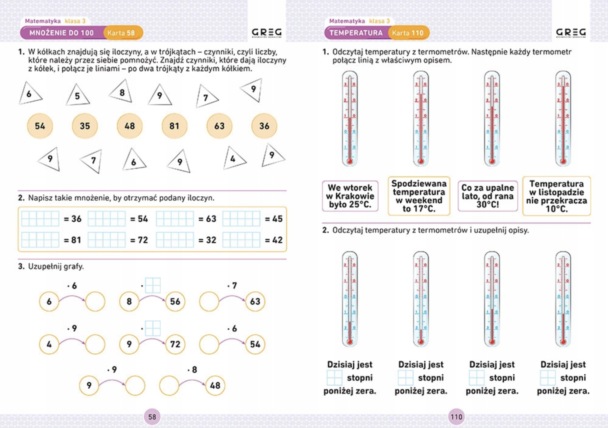 Dzięki tej publikacji trzecioklasista zdobędzie wszystkie przewidziane programem nowe umiejętności i rozwinie wiedzę nabytą w młodszych klasach, co gwarantuje brak problemów z matematyką w kolejnych klasach. Nauczy się sprawnie posługiwać się liczbami do 1 000 000, dodawać, odejmować, dzielić i mnożyć do 1 000, utrwali podstawową wiedzę z geometrii i rozwinie myślenie abstrakcyjne, udoskonali posługiwanie się miarami i wagami takimi, jak kilogram, litr, metr, opanuje korzystanie z zegara, kalendarza i liczenie czasu, jak również rozwinie umiejętność posługiwania się pieniędzmi i sprawnego wykonywania na nich działań.